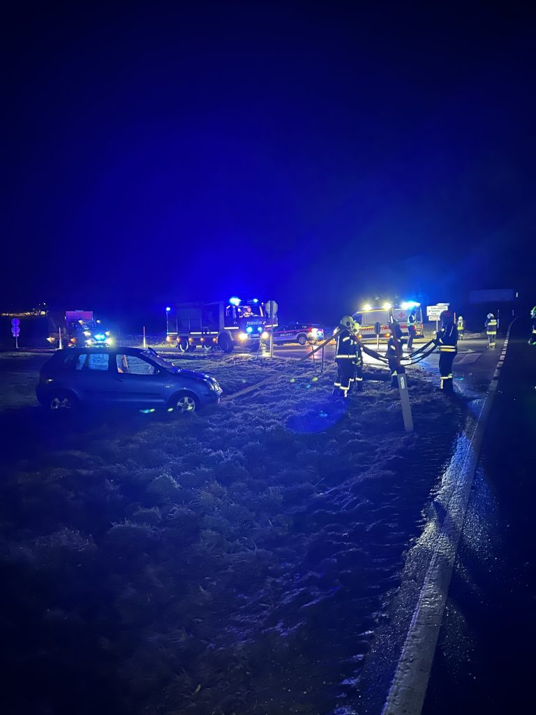 Am Dienstag, dem 17. Februar, wurden wir zu einem Verkehrsunfall mit der Alarmierung „T1 Verkehrsunfall – Verletzungen, B1 km 110,6, Auto im Acker“ gerufen.