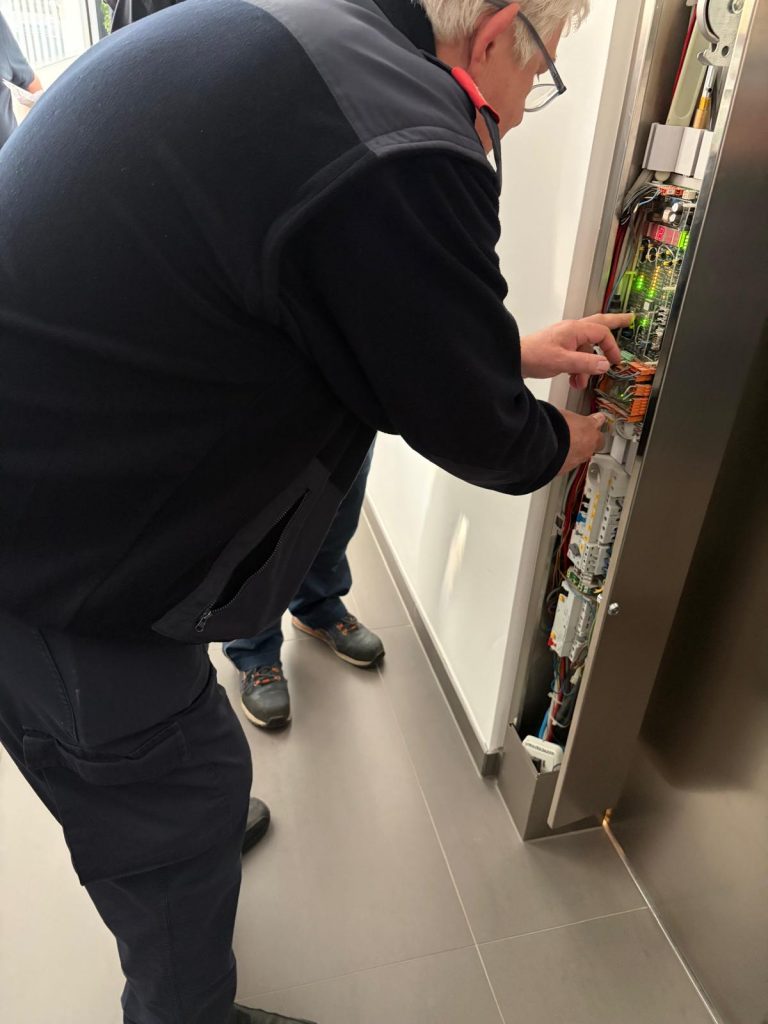 Anschließend folgte der praktische Teil, den wir bei der Firma Mitterbauer durchführen durften. Hier wurde uns durch einen Techniker eine ausführliche Einführung in den dort eingebauten Aufzug gegeben.