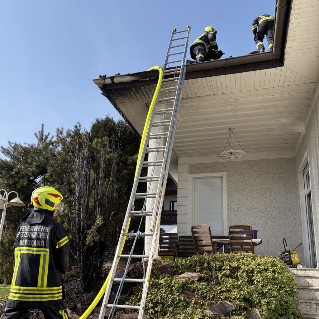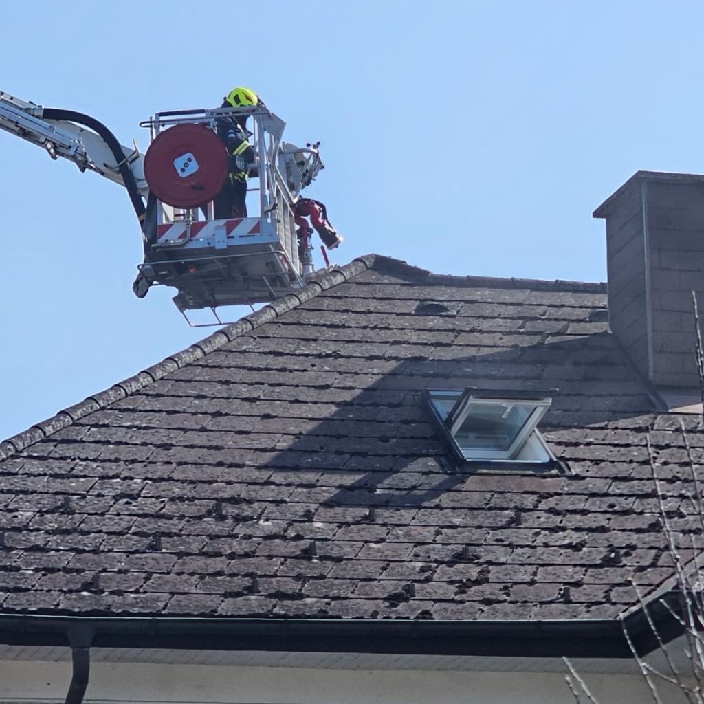 Bei unserem Eintreffen war der Brand, der von einem Baum aus bereits auf den Dachstuhl übergegriffen hatte, unter Kontrolle. Anschließend wurde das Dach geöffnet und es folgten noch Nachlöscharbeiten sowie die Druckbelüftung des Gebäudes.