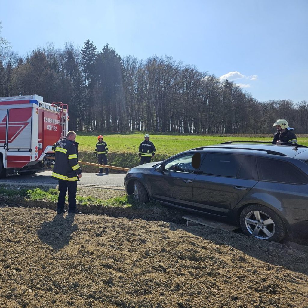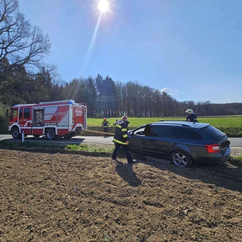 Ein Fahrzeug kam aus bislang unbekannter Ursache von der Fahrbahn ab und kam überwiegend im Acker zum Stillstand.