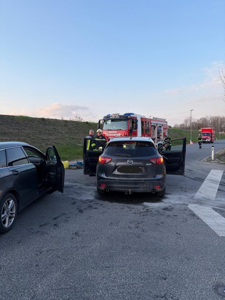 Am Einsatzort angekommen, wurden zwei kollidierte PKWs vorgefunden, bei denen auch Betriebsmittel ausliefen. Sofort wurden die auslaufenden Stoffe gebunden, um ein weiteres Ausbreiten zu verhindern.