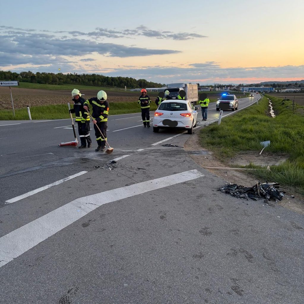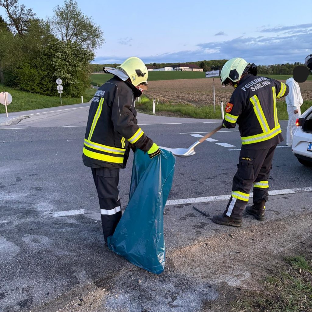 Nachdem beide Fahrzeuge von der Fahrbahn entfernt worden waren, reinigten wir noch die Straße, damit der Verkehr unbehindert freigegeben werden konnte.