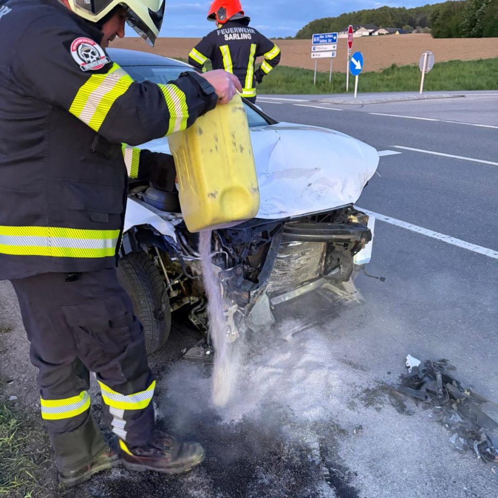 Dort angekommen, war die Polizei bereits vor Ort. Wir sicherten umgehend die Unfallstelle ab sowie begannen mit dem Binden der auslaufenden Betriebsstoffe, die beide PKW verloren.