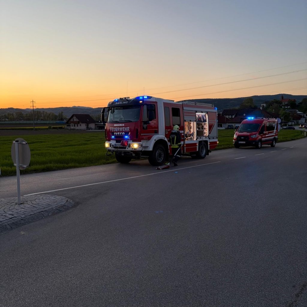 So lautete unsere Alarmierung am Mittwochabend, dem 22. April. Umgehend rückten die ersten Kameraden zum Unfallort aus.